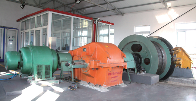 絞車采用彈性焊接結構卷筒(卷筒可剖分),新一代盤式制動器和液壓站裝置,制動靈敏、速度快;雙筒絞車設有液壓齒輪離合 器及調繩聯鎖裝置,調繩準確迅速;操縱臺設有圓盤式深度指示器,整機具有技術先進、結構緊湊、操作方便、安全可靠、低電耗等 優點。電氣系統由控制柜、操縱臺、電阻器、電機等組成。配套電控可采用JDK-P或TDK-PLC控制或TDK-BP(變頻調速)成套系 統(動力制動為獨立單元設置,供用戶選擇)。